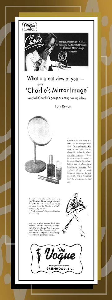 Shelley was THE Charlie perfume girl from 1976 to 1982. She was dubbed as THE quintessential Charlie Girl because she was the embodiment of the brand's ideal - gorgeous, sexy, young... as well as independent, confident and loving every minute of it. In 1977, she appeared in an ad for Charlie called "What a great view of you - with 'Charlie's Mirror Image' and all Charlie's gorgeous sexy-young ideas from Revlon," which was a promo for a regular-and-magnifying mirror (back-to-back on a flexible goose stand) dividend for just $5.50 with any $5.00 purchase from the Charlie or Chaz collection. It was also a promo for Charlie's latest beauty products - the Lean Gel-System Skin-Care for clean, fresh and soft skin, Marvelous Makeup in the latest colors for the face, lips and eyes, and the Extra Extra-Shine Conditioning Shampoo for the cleanest hair. And, of course, the Charlie fragrance - which was always full of surprises. Shelley appeared in the ad and was Charlie-Girl fabulous in it as always.